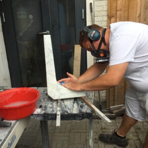 Her har vi en kunstner som kommer fra Italien, han arbejder med marmor i Danmark, han skal på en udstilling med sine skulpturer, men har ikke fået alt sit værktøj med.
