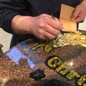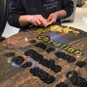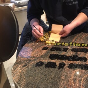 Vælger man af lige vel at få lagt bladguld i inskriptionen, skal man være opmærksom på at det vi kræve vedligeholdelse jævnligt, hvor der skal lægges nyt bladguld i for at holde sig pæn og læsbar.