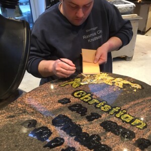 Derfor laver vi ikke bladguld i inskriptionen særlig ofte mere, da det ikke holder sig pænt særlig længe.