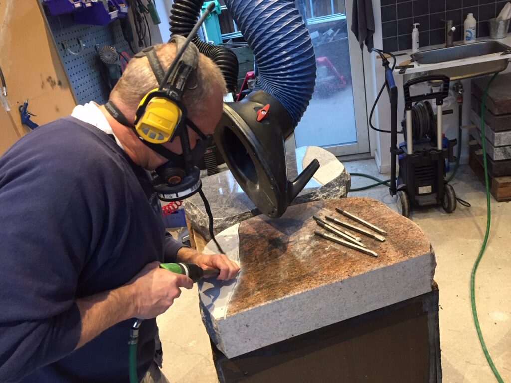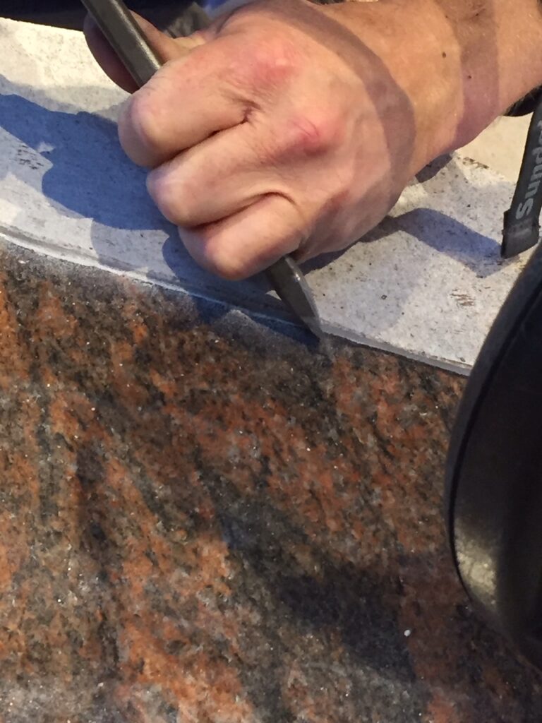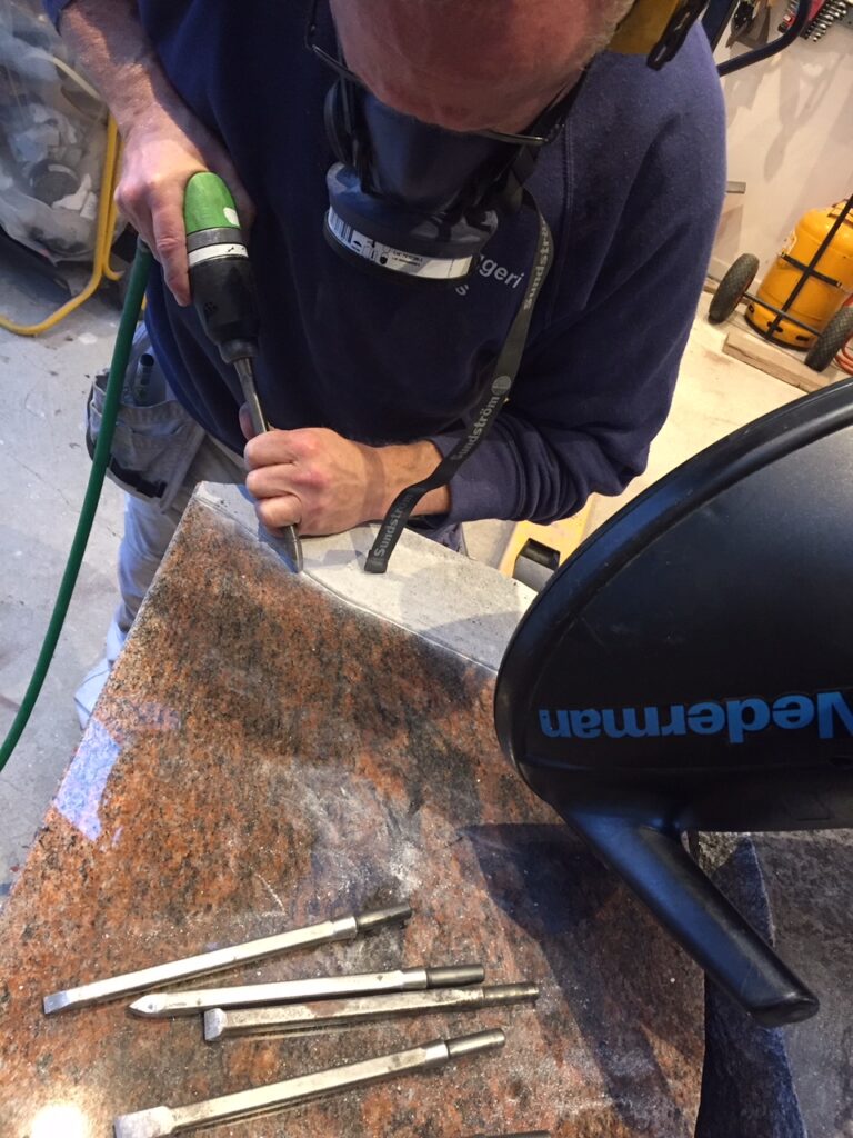 Så har det kriblet i fingrene for at lave fine dekorations sten, derfor har Tony, lige hugget nogle fine felter i nogle poleret gravsten så de nu er klar til montering af bronce dekorationer.