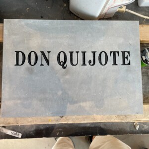 Normalt laver vi gravsten, men denne gang fik vi lov til at lave det fine skilt til forestillingen