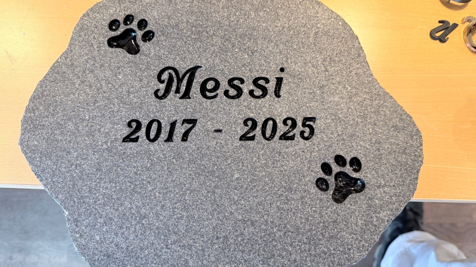 For nylig fik vi lov til at skabe en personlig gravsten til en elsket hund ved navn Messi, som levede fra 2017 til 2025. En trofast følgesvend, en ven og et familiemedlem, der nu har fået et smukt sted at blive mindet, i familiens have i sommerhuset i Nykøbing Falster.