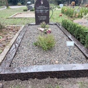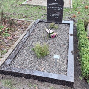 - Gravstenen er monteret på rammepartiets sokkel