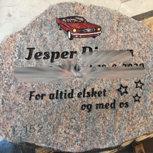 Jeg fik tegnet en skitse som familien godkendte, på gravstenen er også en rigtig personlig efterskrift, de tre stjerner symbolisere Jespers tre børn.