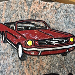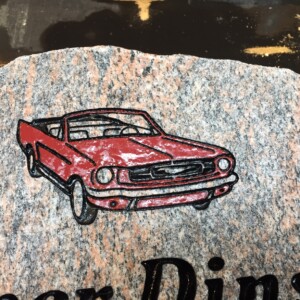 da Jesper tidligere havde haft en Ford Mustang med “hårdt” tag, kunne det være rigtig hyggeligt at få den med på gravstenen, men i himlen er vejret altid godt så hvorfor ikke en cabriolet udgave som vi “mænd” altid drømmer om.