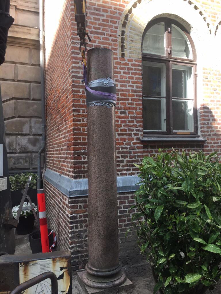 Søjlerne er i poleret granit ca. 260cm høje og ca. 40cm i diameter så små var de bestemt ikke.