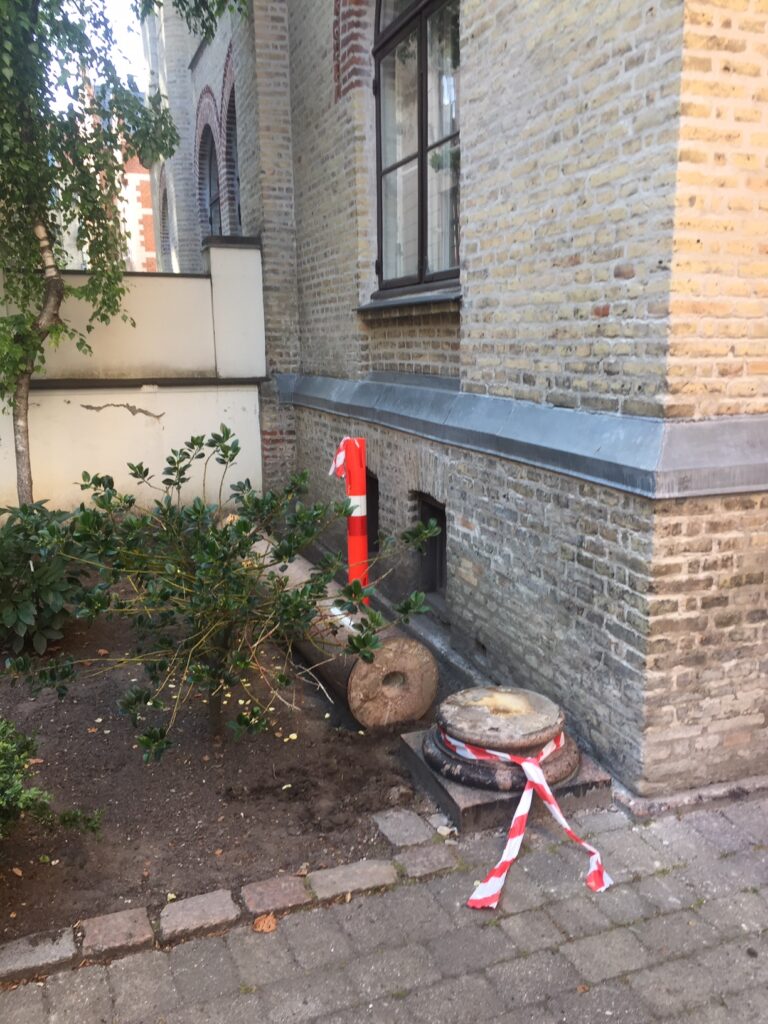 En vicevært i en ejendom på Frederiksberg opdagede nemlig af deres granitsøjler stod løse, de var ikke fæstnet i fugen mere.
