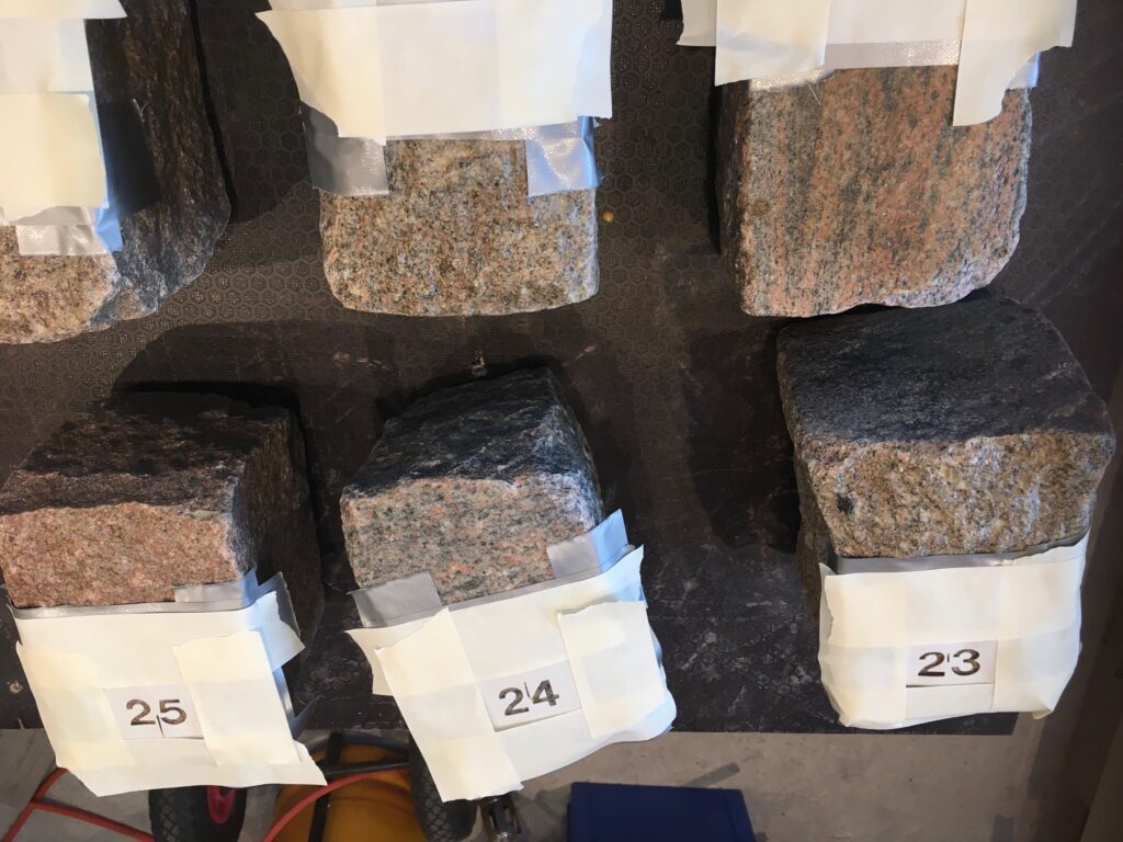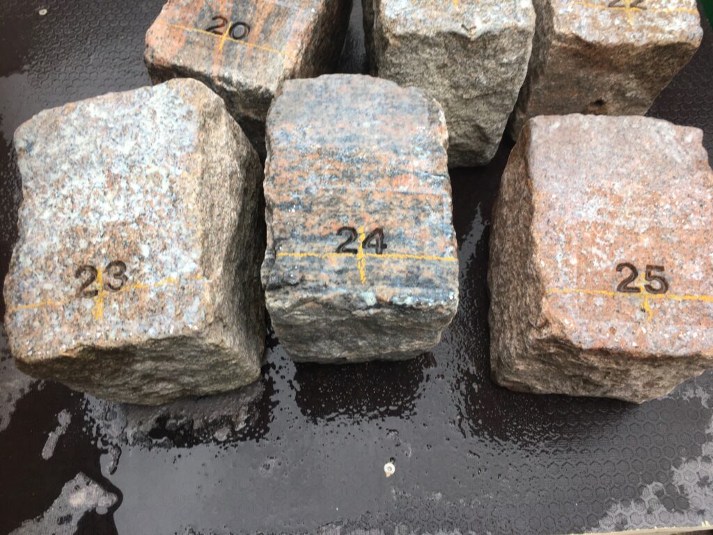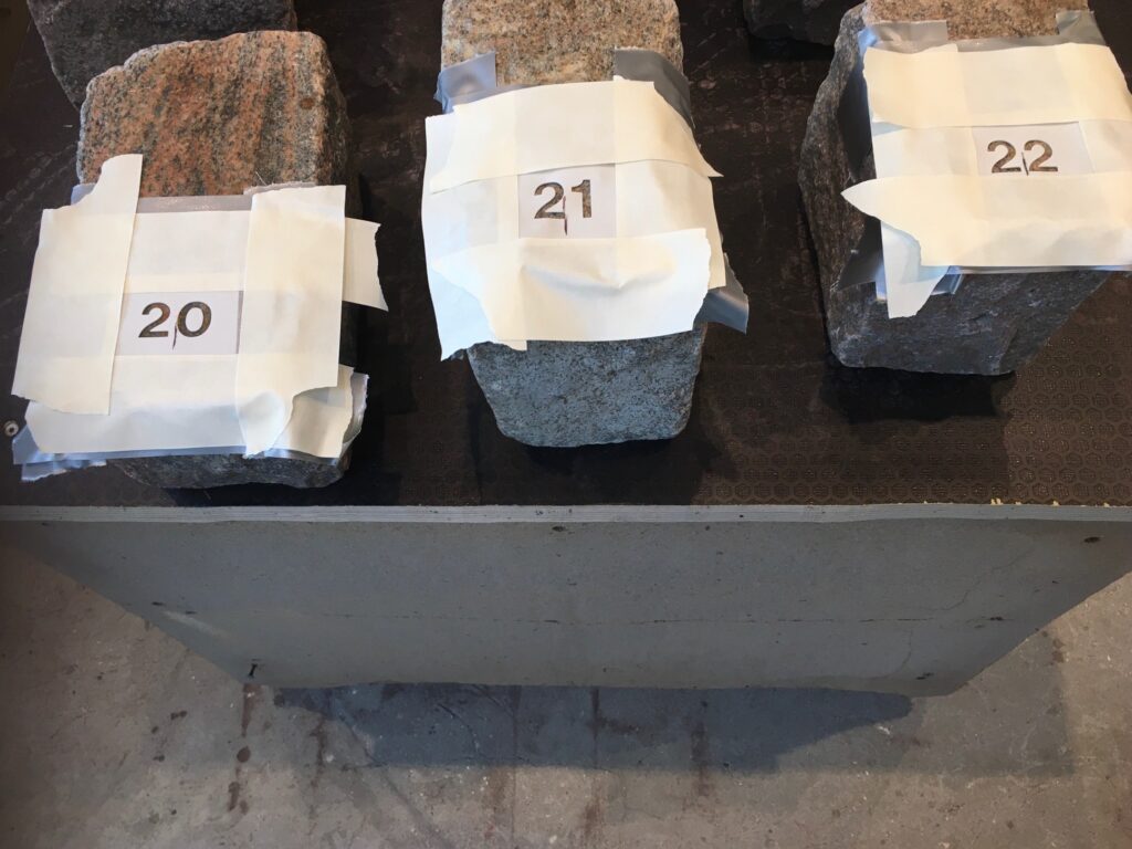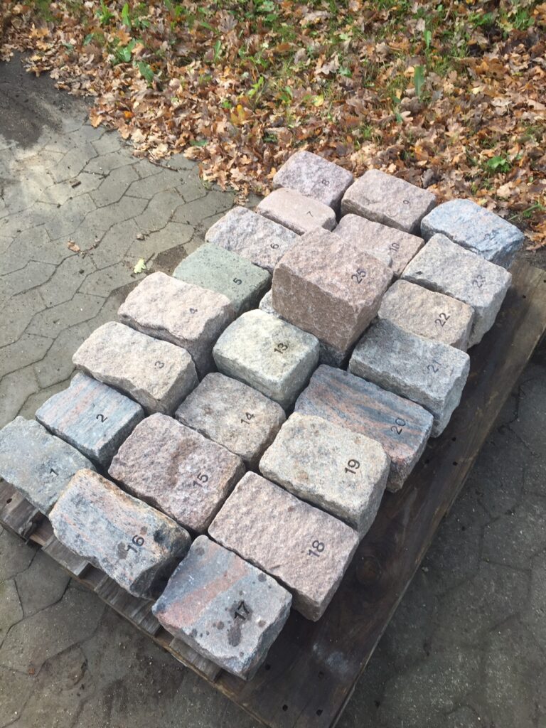 Vi har lige lavet en række nummersten til Skovvejens Kirkegård, som hen over vinteren anlægger et nyt område med urnegravsteder, som bliver med brosten omkring hvor gravstedsnumrene vil stå.