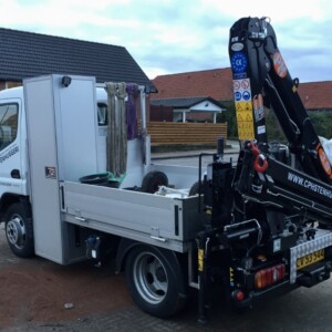 Med vores speciel fremstillet bil er det hermed Danmarks korteste og smalleste stenhugger bil, med den størst mulige kran, kan vi løfte mest og nå længst ud, og det er vi meget stolte af.!