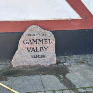 Tidligere stod stenen diskret for enden af remisen, men efter en grundig renovering har vi nu flyttet den ud til hovedgaden, hvor den kan ses og nydes af langt flere besøgende. På den måde får historien om Valby Remise en mere synlig placering – et lille stykke kulturarv, der nu står flot og tilgængeligt for nye generationer.