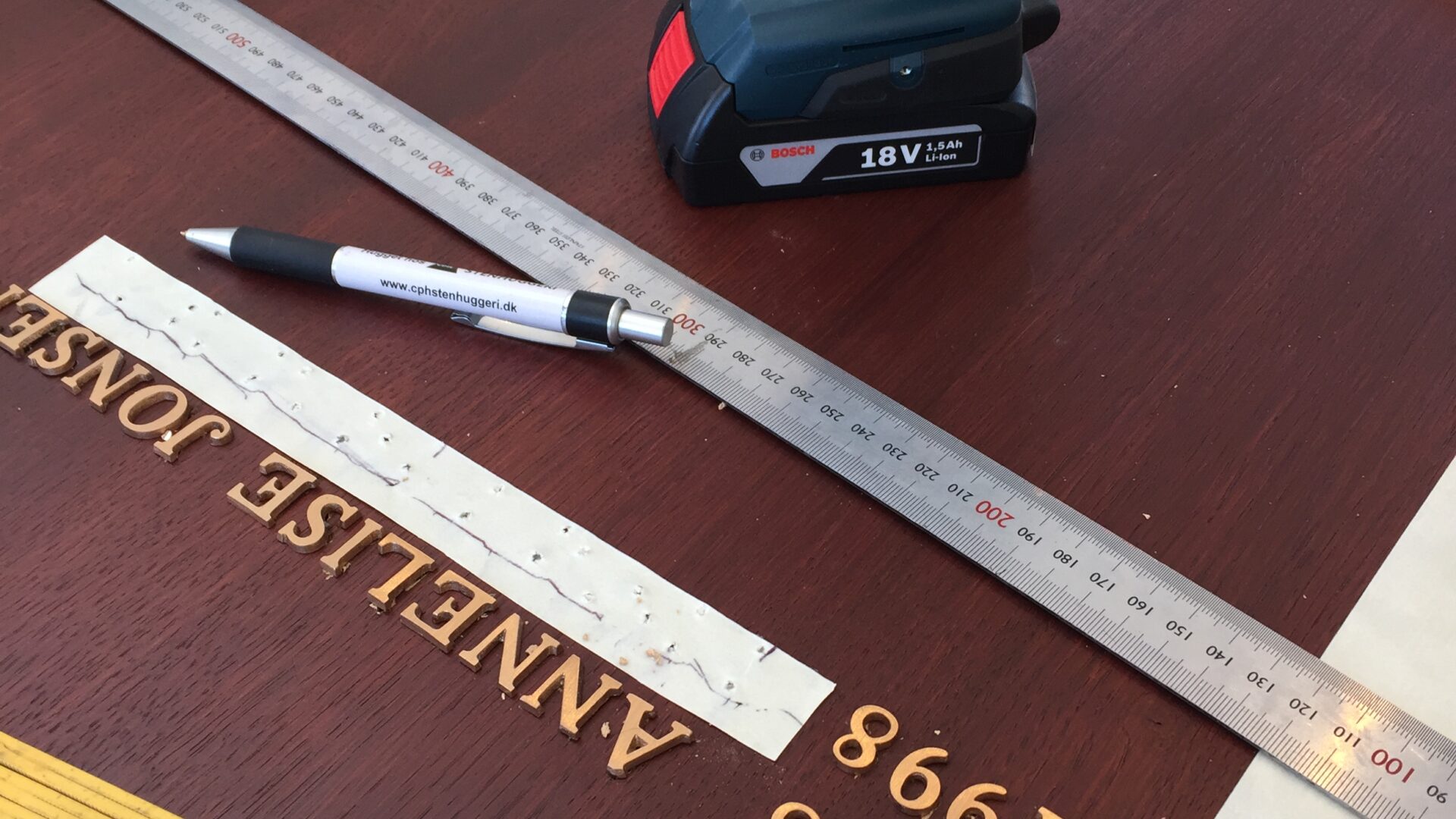 Deres tømrer lavede en fin egetræs tavle og indfarvede den