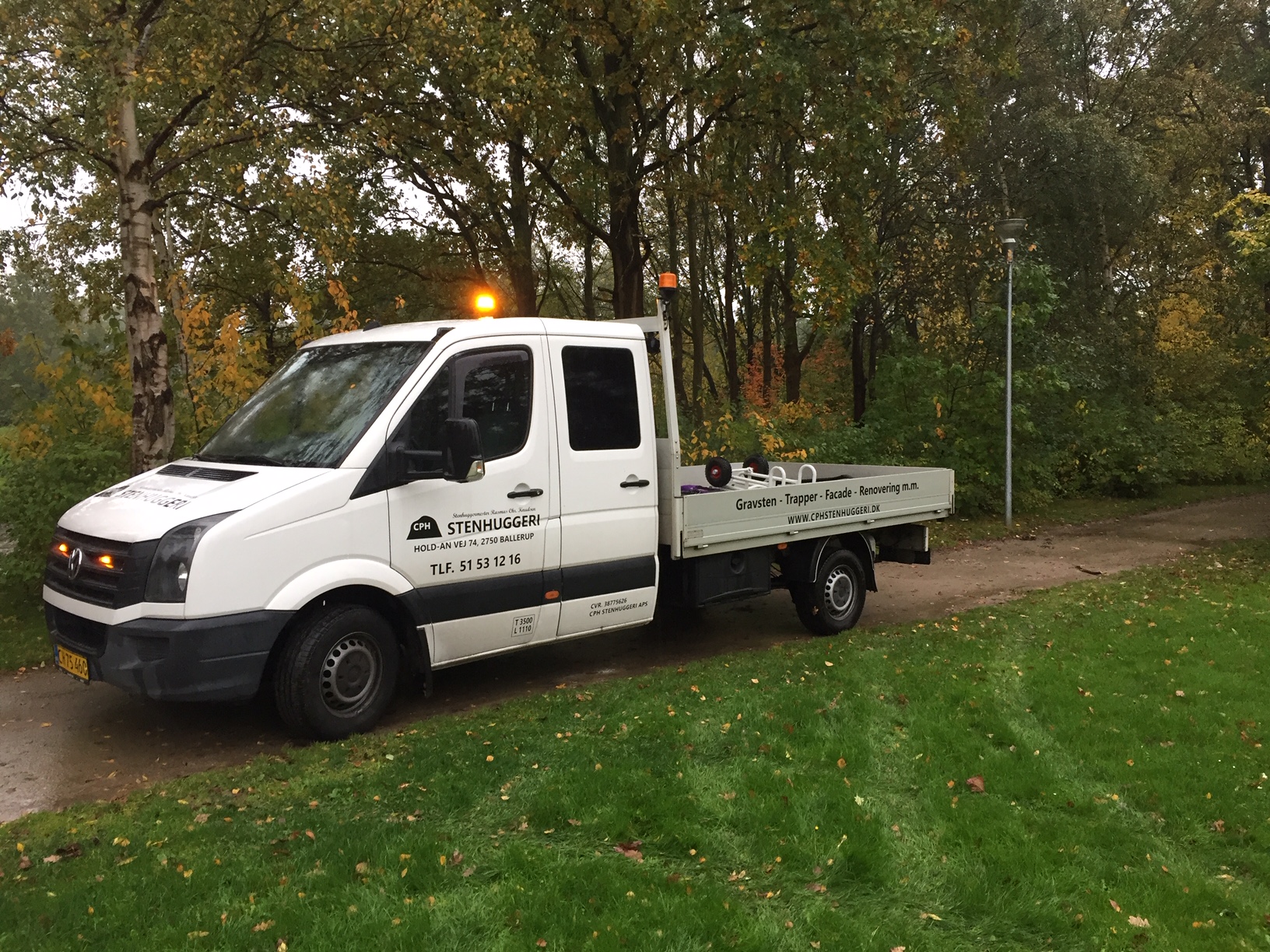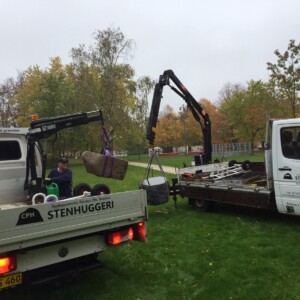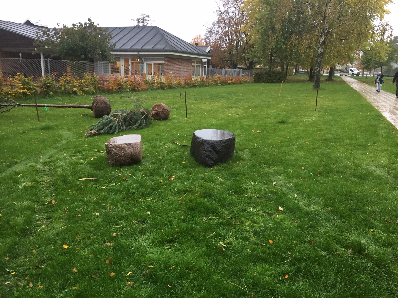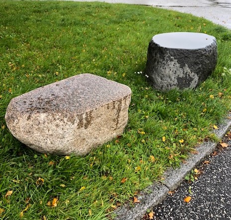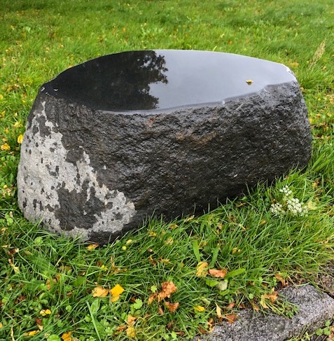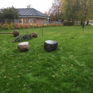 Mindelunden består af forskellige træer og nu to sidde sten i granit som vi leverede i oktober.