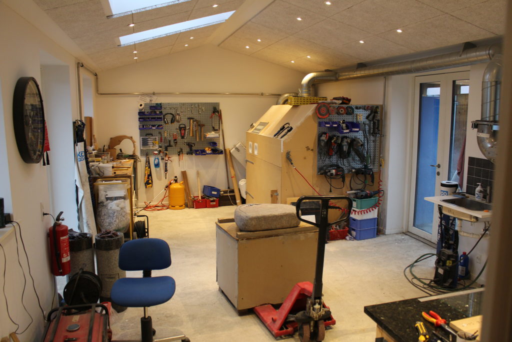 Her er et sjældent syn, et næsten tomt værksted.