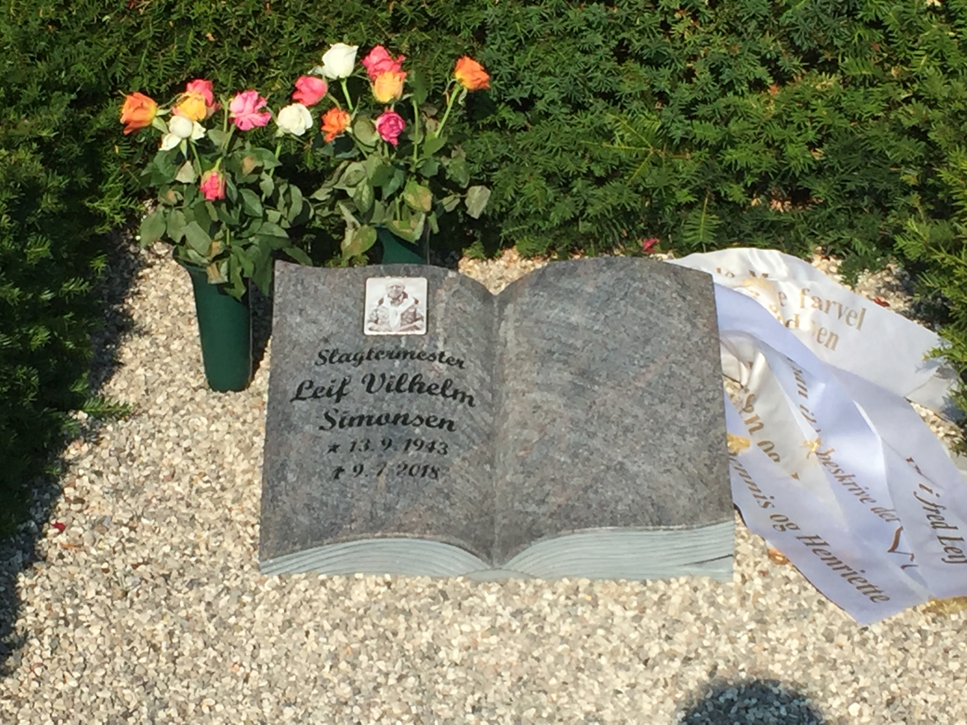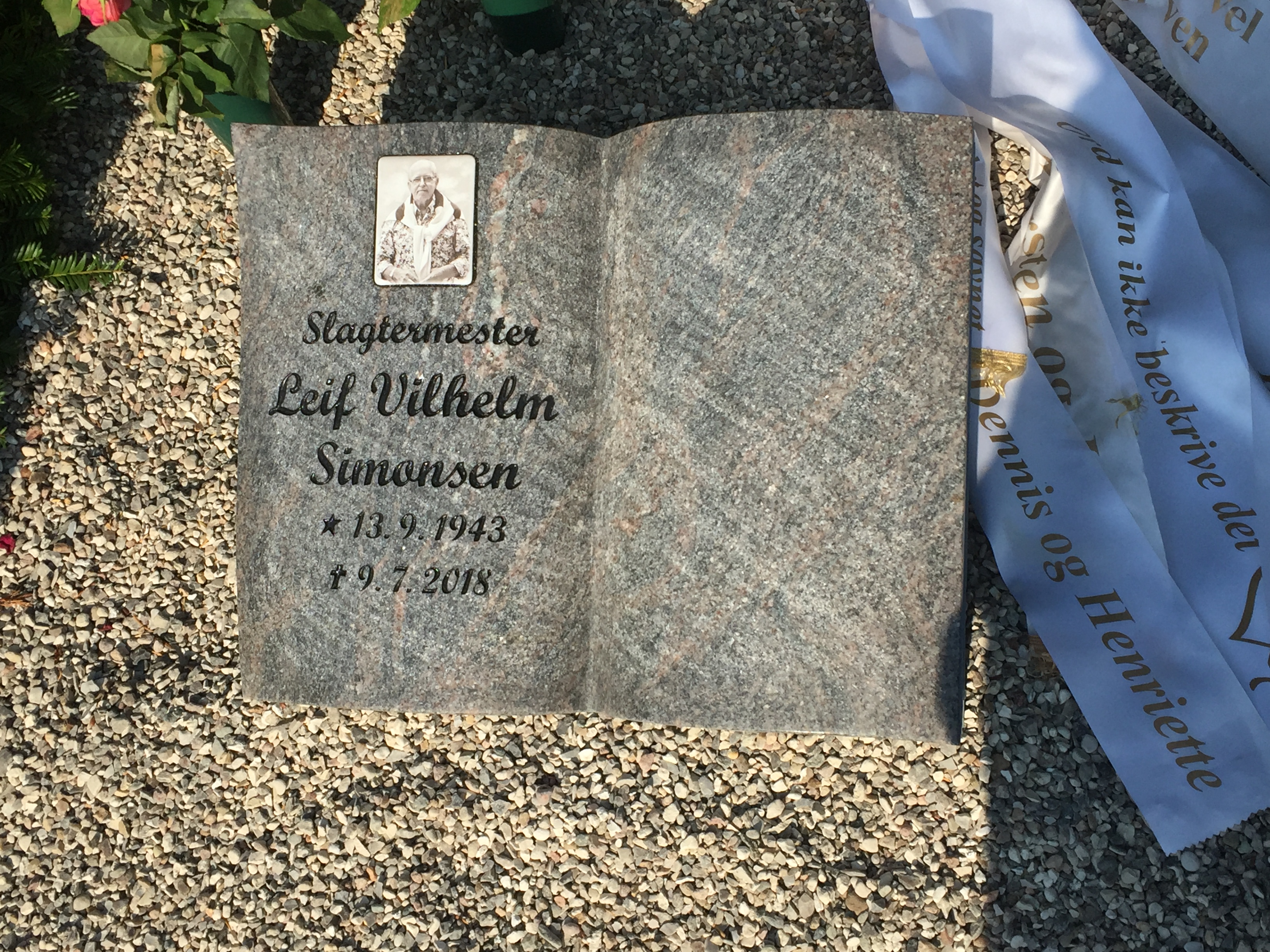 I toppen sidder et porcelænsbillede af afdøde Slagtermester Leif Vilhelm Simonsen i sort/hvid størrelsen er 7x9cm .