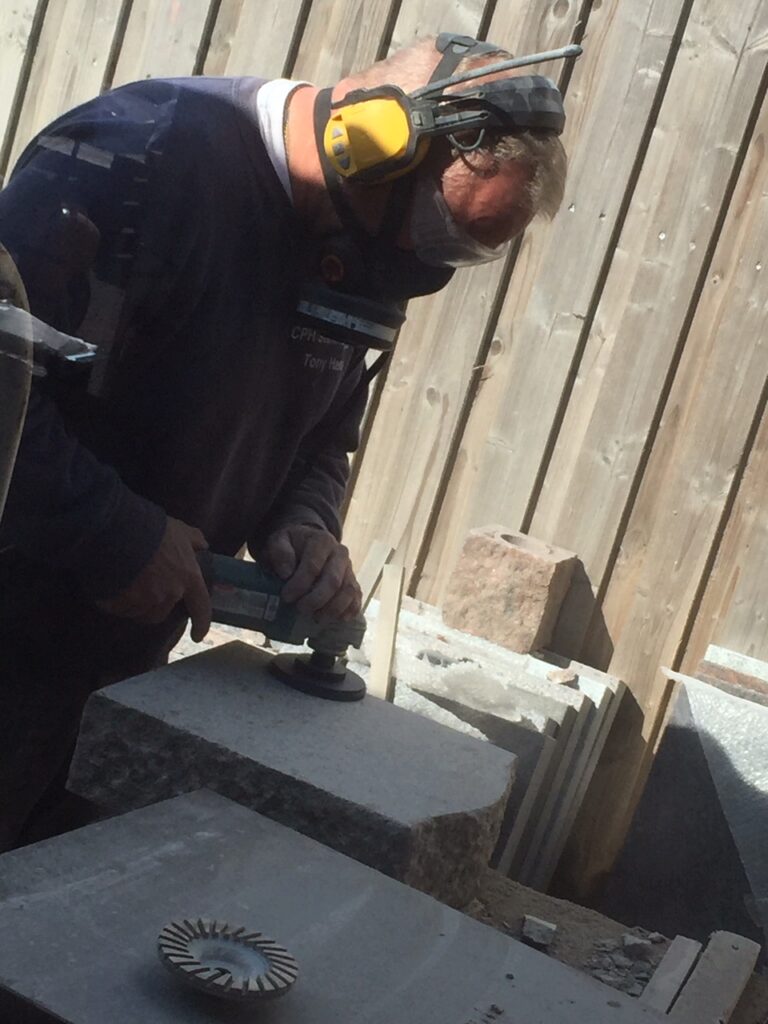 Her har jeg tegnet et urne monument til en kunde, jeg har hugget det til, og spidshugget sidder og bagside.