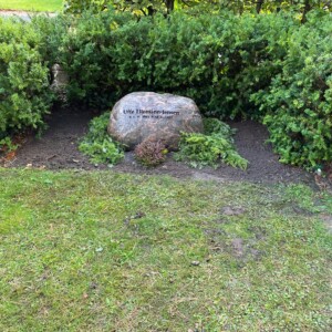 Gravstenen udførte vi sidste år, inskriptionen er skrifttypen Omega Bold, udført i en dyb vedligeholdelsesfri udgave.