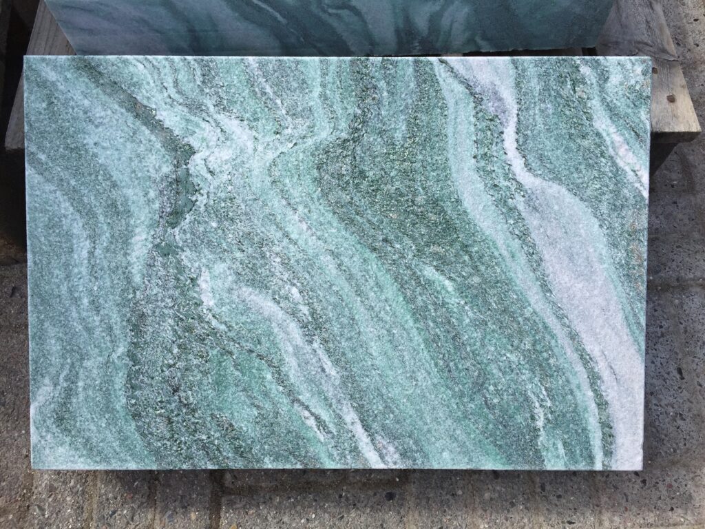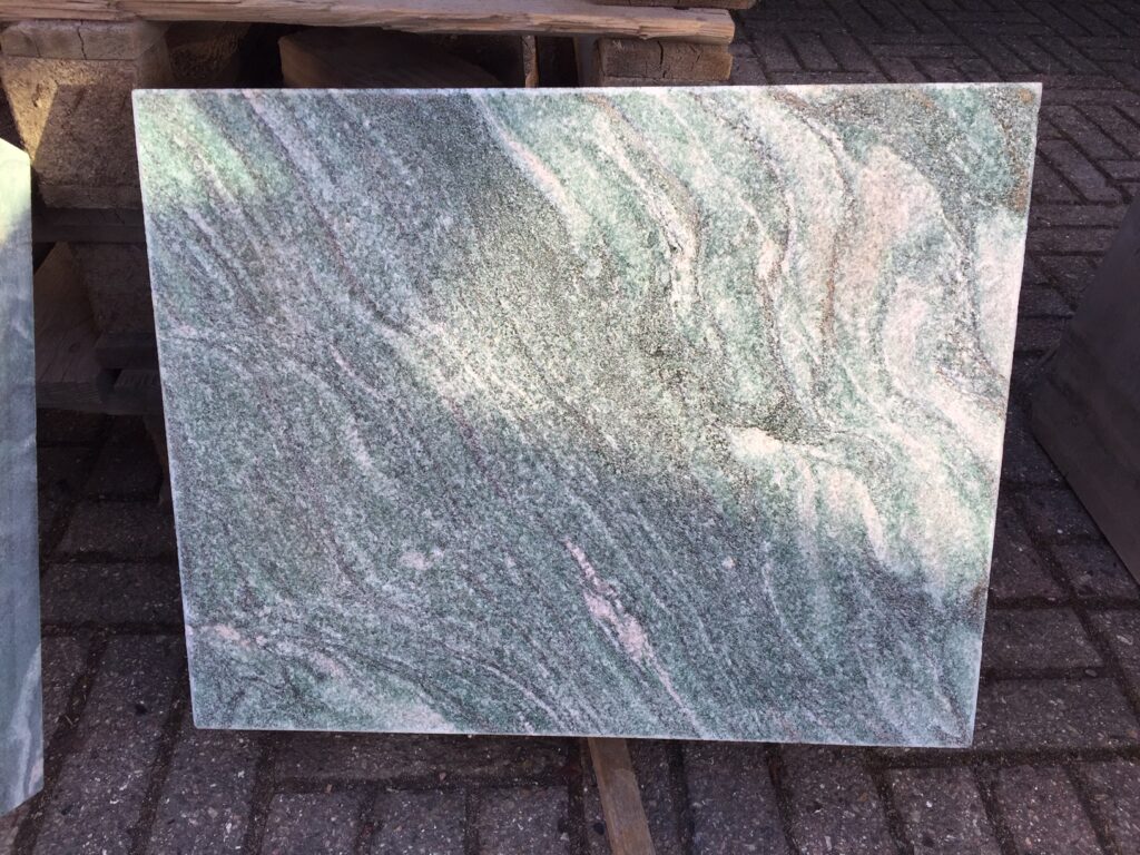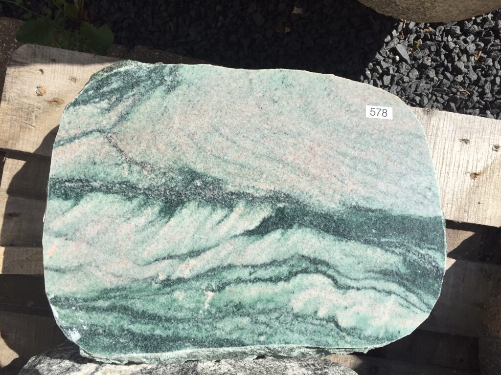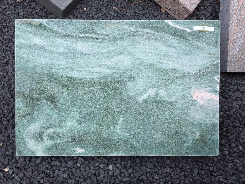 Lapland granitten variere meget med de lyse åre, og det meget mørkegrønne fyldt med glimmer.