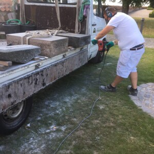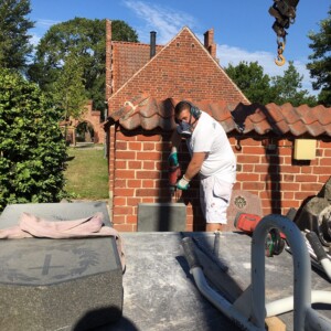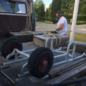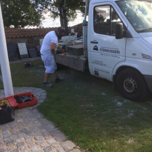 Hvis det er et monument, så støber vi soklen fast, og når det er hærdet, kommer vi igen og sætter monumentet ovenpå, hvor der er boret huller i soklen og monumentet, så det kan samles med rust og syrefri gevindjern.